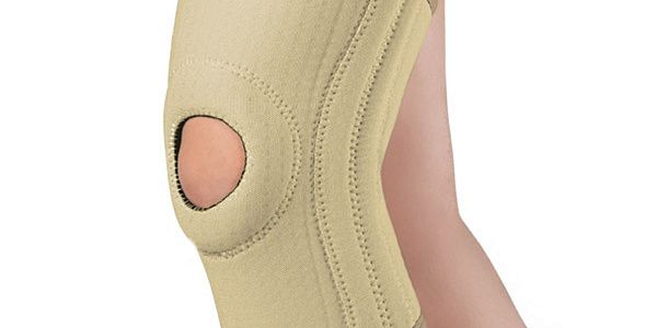 Ортез выполнен в виде бандажа на коленный сустав, имеет отверстие, стабилизирующее кольцо для надколенника и отверстие в области подколенной ямки. Усилен по боковым поверхностям двумя парами пружинных ребер.