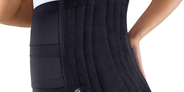 Спинка изделия выполнена из нерастяжимого хлопчатобумажного полотна, корсет имеет широкий эластичный пояс и дополнительные боковые стяжки, усилен 4-мя моделируемыми ребрами жесткости. Ребра жесткости помогают снять нагрузку с болезненных зон и дают отличный стабилизирующий эффект.