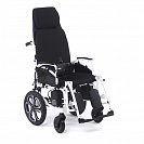 Электроприводное кресло-коляска с возможностью перевода сиденья из сидячего в горизонтальное положение для отдыха, или проведения процедур. Возможность без посторонней помощи в считанные секунды организовать полноценное лежачее место экономит силы и нервы больного за счёт отсутствия передислокаций в коляску и из неё.