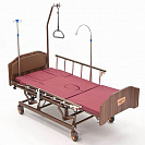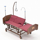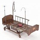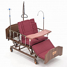 Функциональная кровать с электроприводом, регулировкой высоты, туалетным устройством и электрифицированной функцией переворачивания. Головная секция имеет "ушки" что позволяет больному отдыхать и спать в сидячем положении.