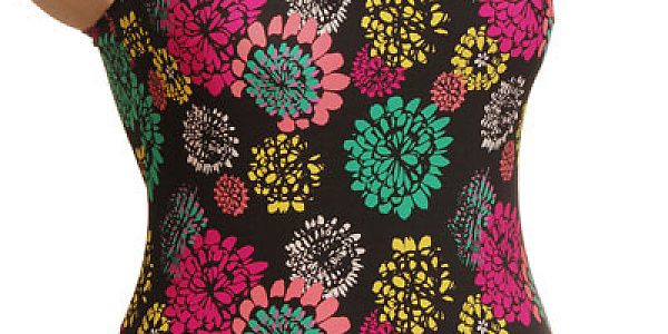 Купальник из эластичного трикотажного полотна с комбинированными вставками. Чашка формованная. Подкладка передней детали купальника с карманами для протеза. Передняя часть купальника оформлена фигурной кокеткой и легкой сборкой. Спинка цельнокроеная, с круглым вырезом и застежкой. Передняя часть и верх спинки купальника на подкладке из эластичного полотна.