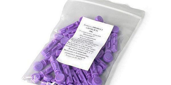 Стерильные ланцеты (25 штук) для забора капли крови. Подходят к большинству ручек для прокалывания (автоматических прокалывателей). Сверхтонкое острие ланцета делает прокалывание менее болезненным 30G. В целях безопасности ланцеты предназначены только для индивидуального пользования. Для безопасной утилизации используйте плотно защелкивающийся колпачок.