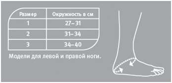 Сантиметровой лентой измеряется окружность голеностопного сустава: через пятку к подъему стопы (см. рисунок).