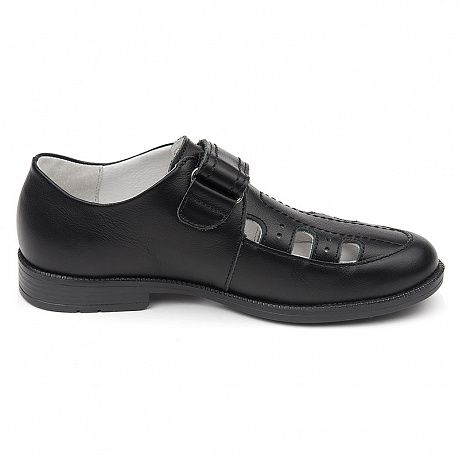 Востребованная классическая модель из натуральной кожи для мальчиков. Верх ботинок облегчен за счет ряда отверстий, что делает их идеально подходящими в качестве сменной обуви в школу. Подошва с естественным перекатом, не скользит. Многослойная анатомическая стелька из мягкой натуральной кожи со сводоподдерживающим элементом для правильного формирования стопы. Широкий ремешок с застежкой типа велкро для регулирования модели по полноте.