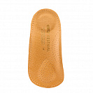 Тонкие ортопедические полустельки с каркасом, выкладкой сводов и небольшим метатарзальным валиком. Имеют отверстие в каркасе и дополнительную амортизирующую вставку для разгрузки пятки. Покрытие стельки изготовлено из натуральной кожи.
