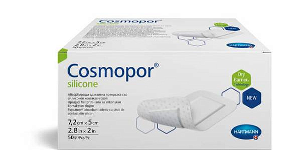 Cosmopor® silicone/Кocмoпop силикон представляет собой неактивную одноразовую самоклеящуюся стерильную и полупроницаемую повязку на рану (гидроцеллюлярную тонкую повязку), состоящую из нетканого материала основы (материала-носителя) и впитывающей подушечки для раны. Обе части повязки покрыты силиконовым клеевым перфорированным слоем и защищены пленкой.