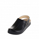 Мужские кожаные сабо MUBB – это практичная обувь, подходящая для работы и отдыха. Эти сабо с задником можно использовать и как сабо медицинские, и как сабо рабочие, и как сабо на каждый день. Сабо имеют анатомическую выкладку сводов, что позволяет поддерживать стопу в естественном для нее положении. Таким образом с помощью ортопедических сабо Мубб можно не только предотвратить появление деформации стопы и пальцев, но и снизить нагрузку на стопу и позвоночник, что благоприятным образом скажется на здоровье и самочувствии. ПоказанияHallux Valgus (Косточка)МозолиМолоткообразные пальцыНатоптышиПлоско-вальгусная установка стопПлоскостопие 1-2 степениПрофилактикаПяточная шпораУставшие ногиОсобенности сабоОртопедическая стелька на латексной основе с эффектом памяти. Под кожаной стелькой находится тонкий слой гелеобразного, упругого материала, который смягчает опору ноги. Латексная основа обладает уникальным свойством - эффектом памяти. Материал стельки запоминает максимально удобное и правильное (с ортопедической точки зрения) положение ступни. И каждый раз, когда человек обувает тапочки, их стелька подстраивается под индивидуальную конфигурацию подошвы, снимая давление с болезненных мест мозолей, натоптышей, трещинок пяток. Сама кожаная стелька так же имеет особое анатомическое строение - она обеспечивает надежную поддержку своду стопы, перераспределяет нагрузку по всей поверхности. Стоит отметить, что стелька имеет углубленную форму. Такая особенность обеспечивает эффект «мягкого ложа» для стопы. Погружаясь в тапочки, нога сразу принимает правильную позицию: пятка не заваливается, зона пальцев не сдавливается.Широкий закрытый носок. Округлый и довольно просторный носок позволяет суставам пальцем свободно функционировать во время ходьбы. Такая конструкция очень важна для людей с деформацией стопы, которая проявляется в смещении пальцев, выпирании косточки. А так же при таких изъянах, как врастающие ногти, мозолистые образования, травмы или чувствительность кожи стопы. Немаловажна закрытая форма носка - это не допускает случайных бытовых травм, способствует сохранению тепла внутри обуви.Амортизирующая подошва-танкетка. Высота подошвы имеет точно вымеренный и правильный размер. Не высокий подъем пяточной зоны обеспечивает анатомически правильное положение позвоночного столба в вертикальной позиции. Кроме этого танкетка выполняет амортизирующую функцию - гасит ударную нагрузку на суставы ног. Нижний слой подошвы изготовлен из прорезиненного материала. Сабо не скользят по кафелю или паркету. В них ходить не только комфортно, но и безопасно. Обувь не взывает риска подвывихов или случайных травм.Полезные свойстваКожаная стелька оказывает мягкий массажный эффект, улучшающий кровообращениеПравильная обувь останавливает прогрессию таких заболеваний, как плоскостопие, пяточная шпора, увеличение косточки большого пальцаОсобая конструкция тапочек способствует расслаблению мышц и улучшению состояния венНоги в обуви отдыхают, снимаются болезненные синдромы, отечностьЗначительно снижается нагрузка на суставы стопы и позвоночный столб.