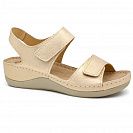 Женские анатомические босоножки D-302 - стильная, легкая и изящная модель золотисто-серого цвета для повседневного ношения и долгих прогулок в теплое время года. Две липучки плотно фиксируют обувь на ноге и обеспечивают полное раскрытие, позволяя легко снимать и надевать обувь.