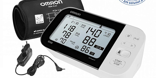 Тонометр Omron M7 Intelli IT, модель HEM 7361T, с универсальной компрессорной манжетой нового поколения Omron Intelli Wrap Cuff, модель HEM-FL31, (22 - 42 см.) - это компактный измеритель артериального давления с максимальным из представленных на российском рынке набором дополнительных пользовательских функций для быстрого и точного измерения артериального давления и пульса в домашних условиях или лечебных учреждениях. Прибор оснащен технологией Afib для определения мерцательной аритмии.