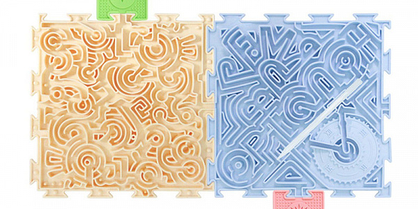 Набор является уникальным сенсорным тренажёром, состоящим из 2 (двух) разнорельефных мягких модулей-пазлов, предназначенный для настольных игр – прохождения лабиринтов.